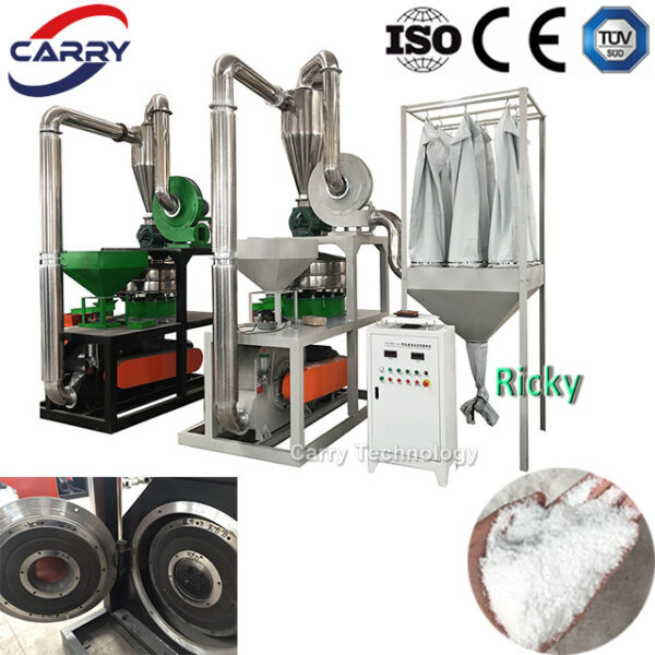 Disc type PE pulverizer is designed to grind plastic materials into plastic powder, such as soft PVC, LLDPE, HDPE, PP, EVA, PET, ABS etc. The final powder size is 20-80 mesh, capacity can be 150-500kg per hour based on customer choice.
